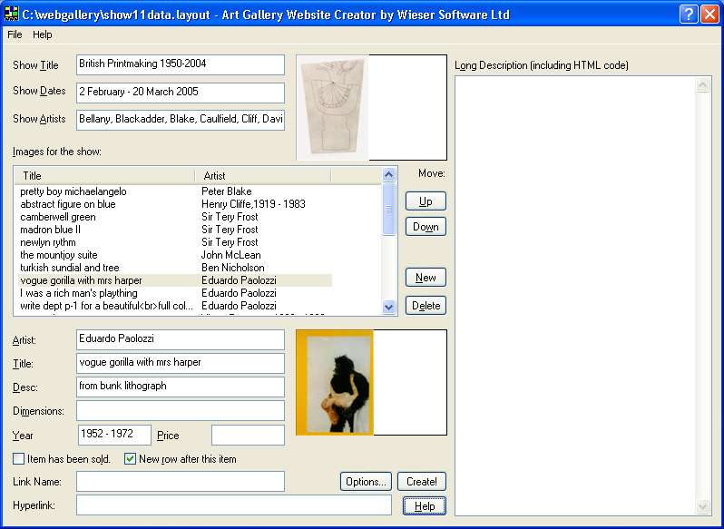 Art Gallery Website Creator was designed so you can take control of your website. No more wrestling with complicated tools. Just drop your artwork onto the program, and Art Gallery Website Creator will do the rest. See a screenshot of Art Gallery Website Creator by clicking the link.